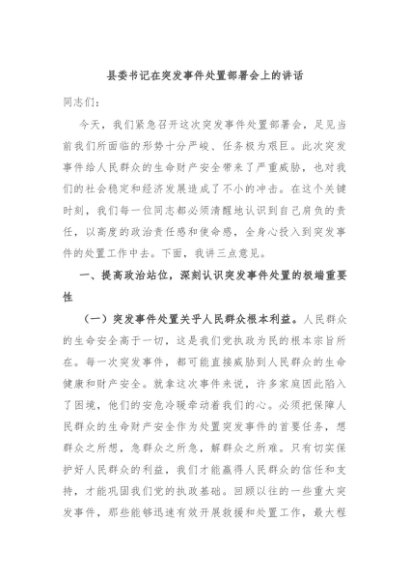 / 【七哥公文】2025年:县委书记在突发事件处置部署会上的讲话+更多免费公文+VX:QiGeGongWen2024