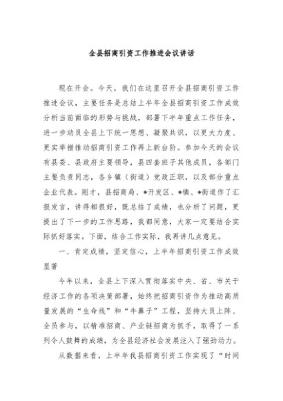 / 【七哥公文】2025年:全县招商引资工作推进会议讲话+更多免费公文+VX:QiGeGongWen2024