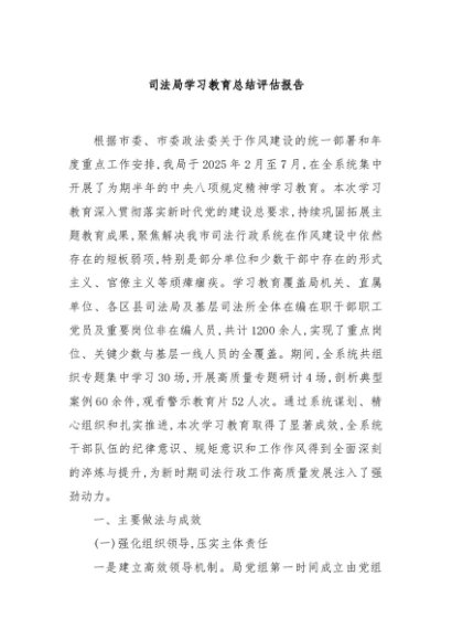 / 【七哥公文】2025年:司法局学习教育总结评估报告+更多免费公文+VX:QiGeGongWen2024