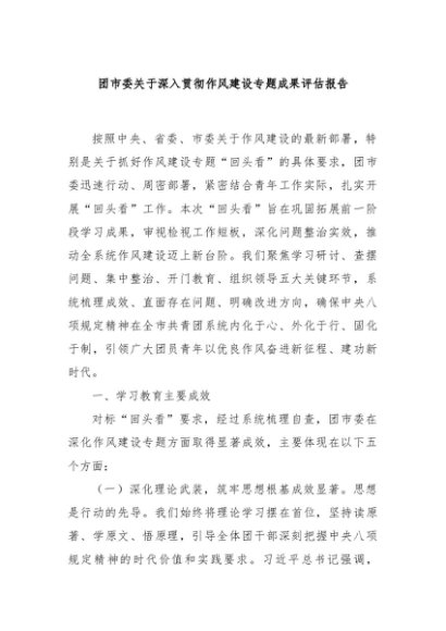 / 【七哥公文】2025年:团市委关于深入贯彻作风建设专题成果评估报告+更多免费公文+VX:QiGeGongWen2024