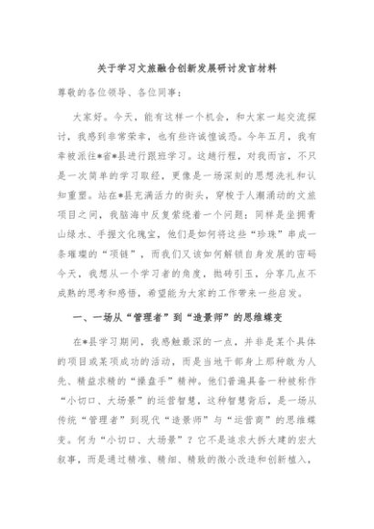 / 【七哥公文】2025年:关于学习文旅融合创新发展研讨发言材料+更多免费公文+VX:QiGeGongWen2024