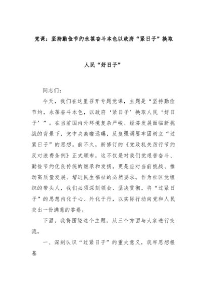 【七哥公文】2025年:党课:坚持勤俭节约永葆奋斗本色以政府“紧日子”换取人民“好日子”+更多免费公文+VX:QiGeGongWen2024