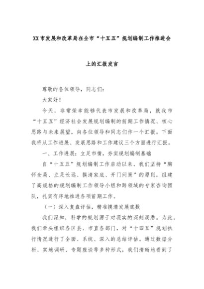 【七哥公文】2025年:XX市发展和改革局在全市“十五五”规划编制工作推进会上的汇报发言+更多免费公文+VX:QiGeGongWen2024