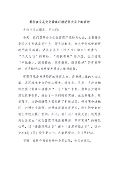 / 【七哥公文】2025年:县长在全县优化营商环境动员大会上的讲话+更多免费公文+VX:QiGeGongWen2024