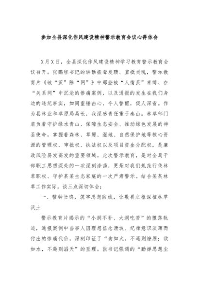/ 【七哥公文】2025年:参加全县深化作风建设精神警示教育会议心得体会+更多免费公文+VX:QiGeGongWen2024