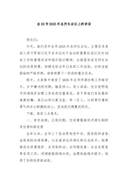 / 【七哥公文】2025年:在XX市2025年总河长会议上的讲话+更多免费公文+VX:QiGeGongWen2024