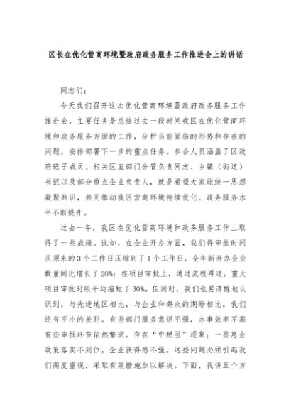 【七哥公文】2025年:区长在优化营商环境暨政府政务服务工作推进会上的讲话+更多免费公文+VX:QiGeGongWen2024