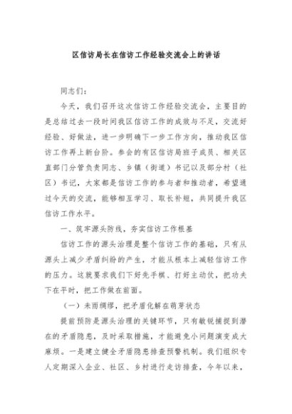 / 【七哥公文】2025年:区信访局长在信访工作经验交流会上的讲话+更多免费公文+VX:QiGeGongWen2024