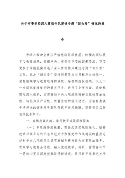 【七哥公文】2025年:关于市委党校深入贯彻作风建设专题“回头看”情况的报告+更多免费公文+VX:QiGeGongWen2024