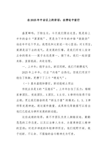 【七哥公文】2025年:在2025年中会议上的讲话:在悖论中前行+更多免费公文+VX:QiGeGongWen2024