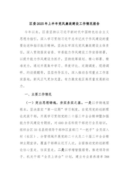 / 【七哥公文】2025年:区委2025年上半年党风廉政建设工作情况报告+更多免费公文+VX:QiGeGongWen2024