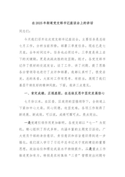 / 【七哥公文】2025年:在2025年街道党支部书记座谈会上的讲话+更多免费公文+VX:QiGeGongWen2024