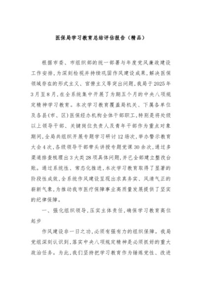 / 【七哥公文】2025年:医保局学习教育总结评估报告(精品)+更多免费公文+VX:QiGeGongWen2024
