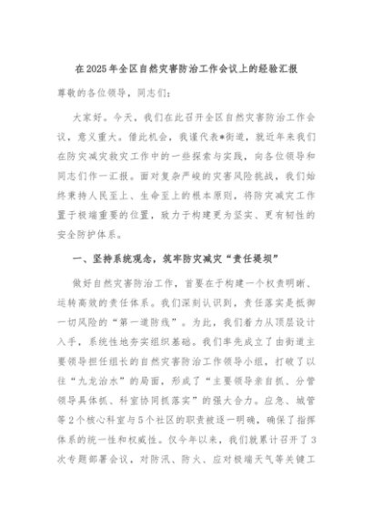 / 【七哥公文】2025年:在2025年全区自然灾害防治工作会议上的经验汇报+更多免费公文+VX:QiGeGongWen2024