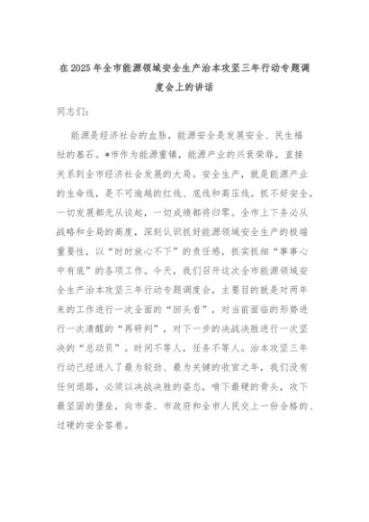 【七哥公文】2025年:在2025年全市能源领域安全生产治本攻坚三年行动专题调度会上的讲话+更多免费公文+VX:QiGeGongWen2024