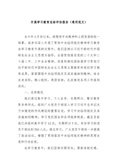 / 【七哥公文】2025年:开展学习教育总结评估报告(通用范文)+更多免费公文+VX:QiGeGongWen2024