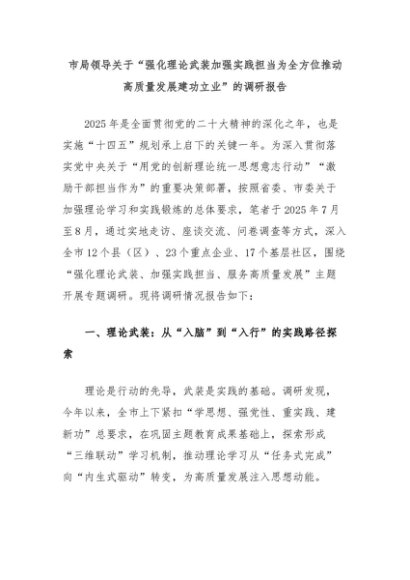 【七哥公文】2025年:市局领导关于“强化理论武装加强实践担当为全方位推动高质量发展建功立业”的调研报告+更多免费公文+VX:QiGeGongWen2024