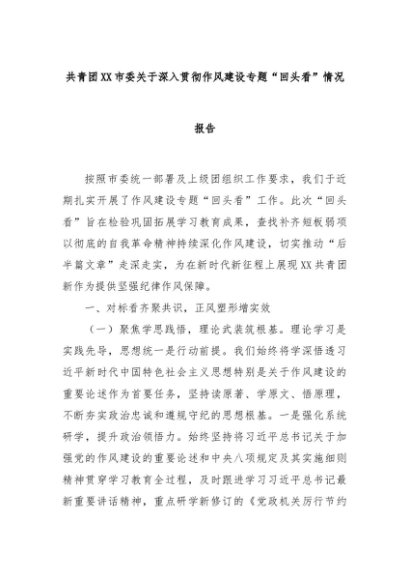 【七哥公文】2025年:共青团XX市委关于深入贯彻作风建设专题“回头看”情况报告+更多免费公文+VX:QiGeGongWen2024