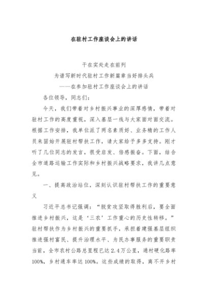 / 【七哥公文】2025年:在驻村工作座谈会上的讲话+更多免费公文+VX:QiGeGongWen2024
