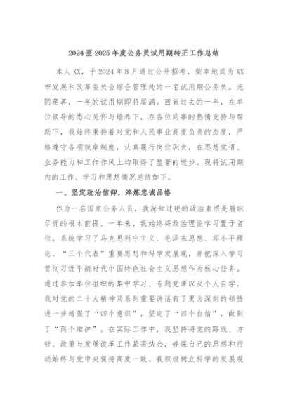 / 【七哥公文】2025年:2024至2025年度公务员试用期转正工作总结+更多免费公文+VX:QiGeGongWen2024