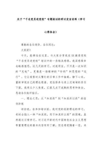 【七哥公文】2025年:关于“千名党员进党校”专题培训的研讨发言材料(学习心得体会)+更多免费公文+VX:QiGeGongWen2024