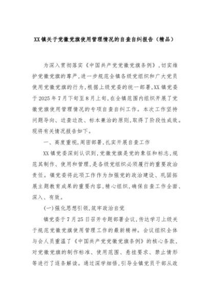 【七哥公文】2025年:XX镇关于党徽党旗使用管理情况的自查自纠报告(精品)+更多免费公文+VX:QiGeGongWen2024