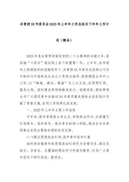【七哥公文】2025年:共青团XX市委员会2025年上半年工作总结及下半年工作计划(精品)+更多免费公文+VX:QiGeGongWen2024