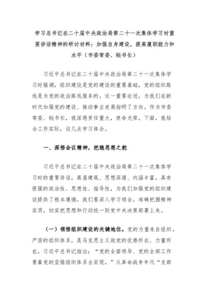 【七哥公文】2025年:学习总书记在二十届中央政治局第二十一次集体学习时重要讲话精神的研讨材料:加强自身建设,提高履职能力和水平(市委常委、秘书长)+更多免费公文+VX:QiGeGongWen2024