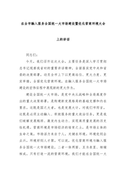【七哥公文】2025年:在全市融入服务全国统一大市场建设暨优化营商环境大会上的讲话+更多免费公文+VX:QiGeGongWen2024