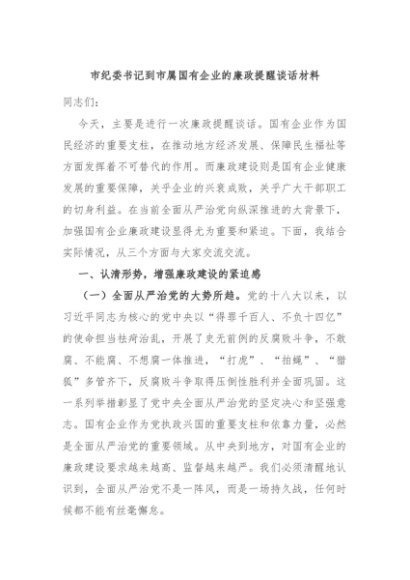 / 【七哥公文】2025年:市纪委书记到市属国有企业的廉政提醒谈话材料+更多免费公文+VX:QiGeGongWen2024