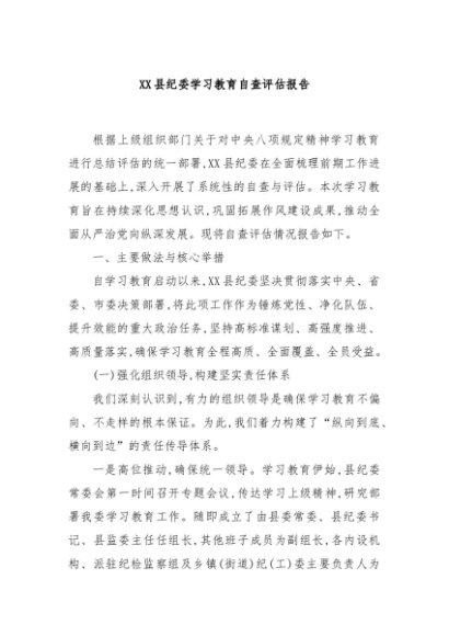 / 【七哥公文】2025年:XX县纪委学习教育自查评估报告+更多免费公文+VX:QiGeGongWen2024