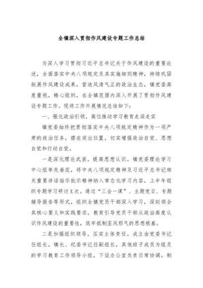 / 【七哥公文】2025年:全镇深入贯彻作风建设专题工作总结+更多免费公文+VX:QiGeGongWen2024