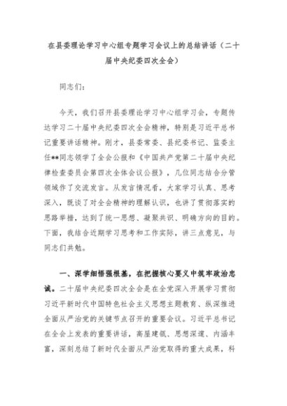 【七哥公文】2025年:在县委理论学习中心组专题学习会议上的总结讲话(二十届中央纪委四次全会)+更多免费公文+VX:QiGeGongWen2024