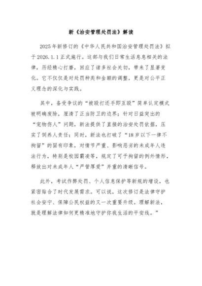 / 【七哥公文】2025年:新《治安管理处罚法》解读+更多免费公文+VX:QiGeGongWen2024