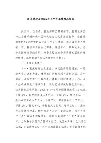 / 【七哥公文】2025年:XX县财政局2025年上半年工作情况报告+更多免费公文+VX:QiGeGongWen2024