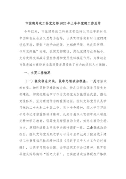 / 【七哥公文】2025年:市住建局政工科党支部2025年上半年党建工作总结+更多免费公文+VX:QiGeGongWen2024