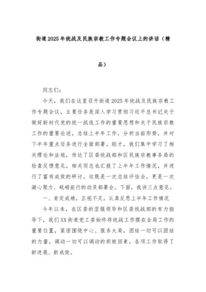 【七哥公文】2025年:街道2025年统战及民族宗教工作专题会议上的讲话(精品)+更多免费公文+VX:QiGeGongWen2024