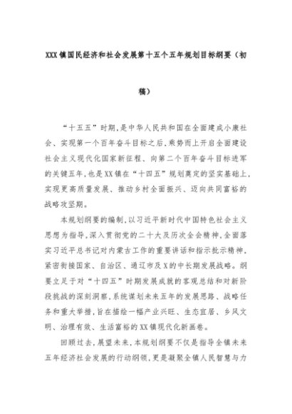 【七哥公文】2025年:XXX镇国民经济和社会发展第十五个五年规划目标纲要(初稿)+更多免费公文+VX:QiGeGongWen2024