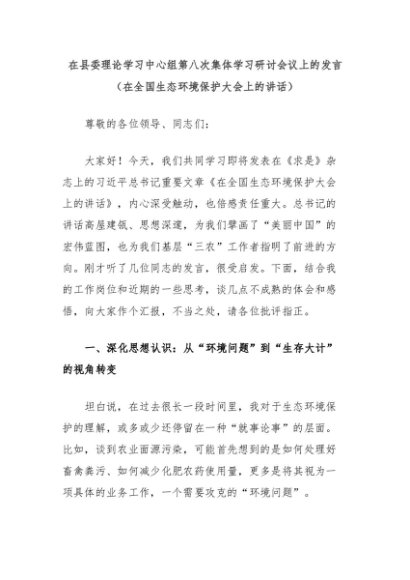 【七哥公文】2025年:在县委理论学习中心组第八次集体学习研讨会议上的发言(在全国生态环境保护大会上的讲话)+更多免费公文+VX:QiGeGongWen2024