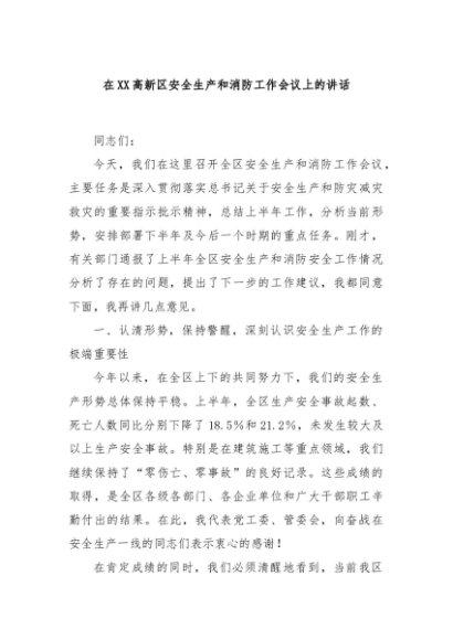 / 【七哥公文】2025年:在XX高新区安全生产和消防工作会议上的讲话+更多免费公文+VX:QiGeGongWen2024