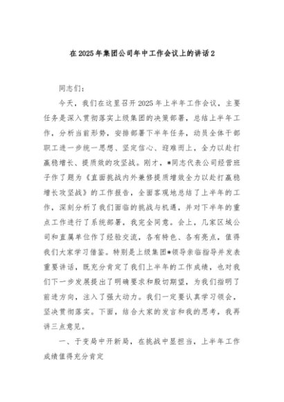 / 【七哥公文】2025年:在2025年集团公司年中工作会议上的讲话2+更多免费公文+VX:QiGeGongWen2024
