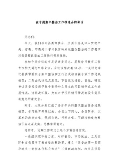 / 【七哥公文】2025年:在专题集中整治工作推进会的讲话+更多免费公文+VX:QiGeGongWen2024