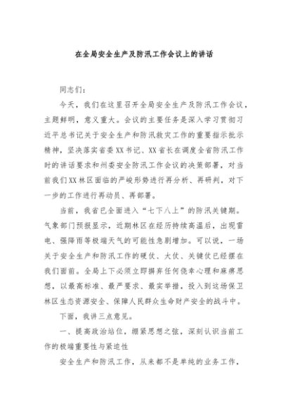 / 【七哥公文】2025年:在全局安全生产及防汛工作会议上的讲话+更多免费公文+VX:QiGeGongWen2024