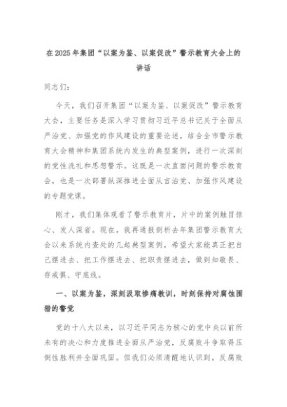 【七哥公文】2025年:在2025年集团“以案为鉴、以案促改”警示教育大会上的讲话+更多免费公文+VX:QiGeGongWen2024
