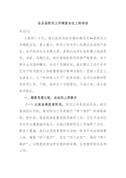/ 【七哥公文】2025年:在全县防汛工作调度会议上的讲话+更多免费公文+VX:QiGeGongWen2024