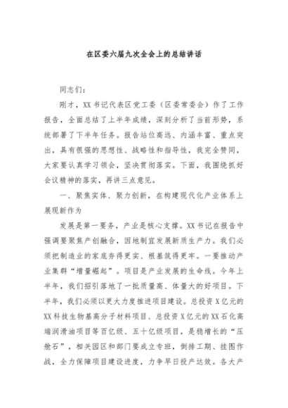 / 【七哥公文】2025年:在区委六届九次全会上的总结讲话+更多免费公文+VX:QiGeGongWen2024