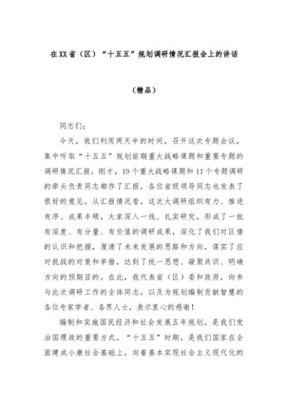 【七哥公文】2025年:在XX省(区)“十五五”规划调研情况汇报会上的讲话(精品)+更多免费公文+VX:QiGeGongWen2024