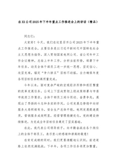 【七哥公文】2025年:在XX公司2025年下半年重点工作推进会上的讲话(精品)+更多免费公文+VX:QiGeGongWen2024