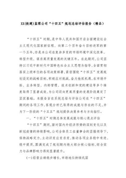 【七哥公文】2025年:XX(铁建)监理公司“十四五”规划总结评估报告(精品)+更多免费公文+VX:QiGeGongWen2024