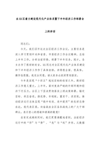 【七哥公文】2025年:在XX区着力建设现代化产业体系暨下半年经济工作部署会上的讲话+更多免费公文+VX:QiGeGongWen2024
